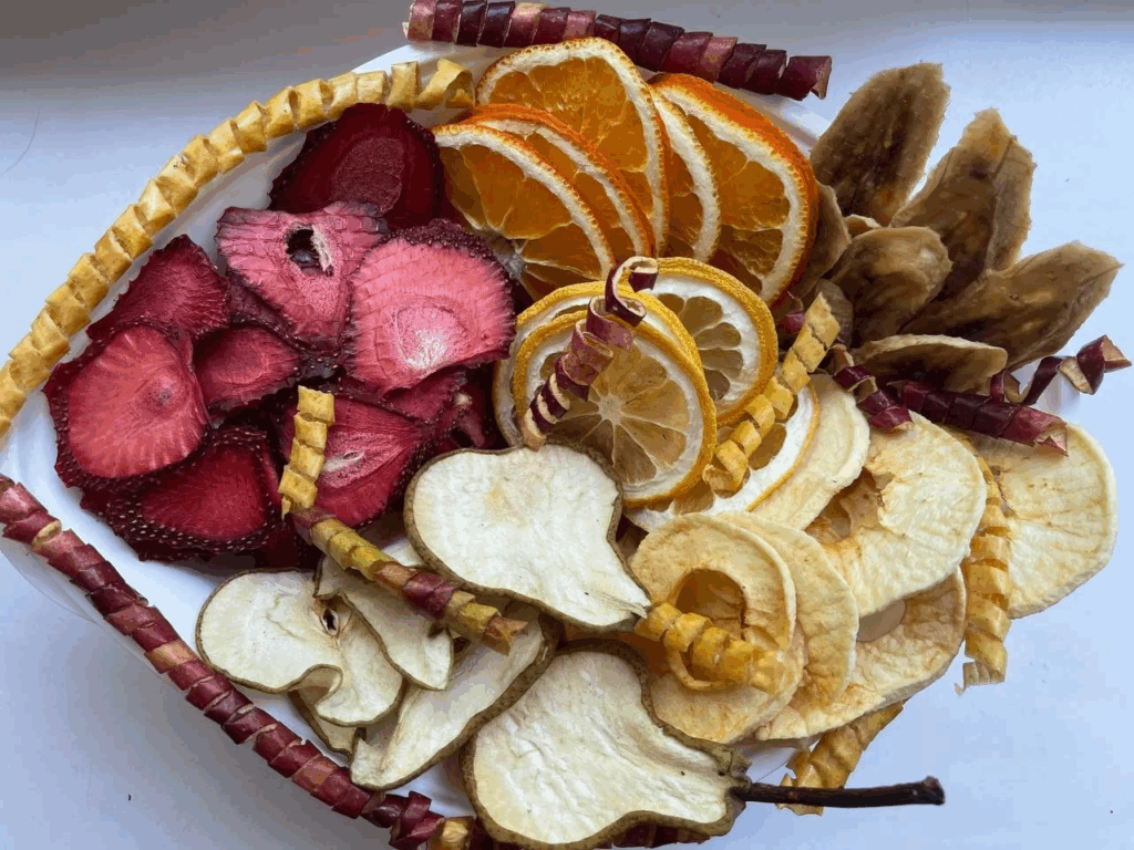 Сушені овочі та фрукти є чудовим способом додати до раціону вітамінів та клітковини, перетворюючи звичайну страву на повноцінну легку їжу. Овочі (морква, цибуля, болгарський перець, помідори) можуть використовуватися як основи для супів та гарнірів, а фрукти (яблука, банани, ягоди) — як поживний перекус. Перед сушінням деякі овочі, як-от морква або зелена квасоля, потребують бланшування.