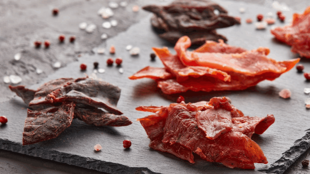 Сушене м’ясо (джеркі) є ідеальним джерелом білка та калорій для походів, оскільки воно зберігає свою структуру і не кришиться. Ці заготовки для походу вимагають особливо ретельного підходу до безпеки та гігієни. Використовуйте нежирні частини м’яса (яловичина, курка, індичка), повністю видаляючи жир, оскільки він швидко прогіркає і псує продукт.